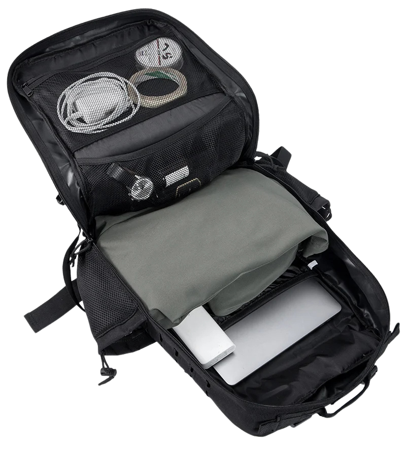 ✔️ Absolutely! It features multiple compartments, including a laptop sleeve, MOLLE system for modular attachments, and secure zippered pockets for easy organization.