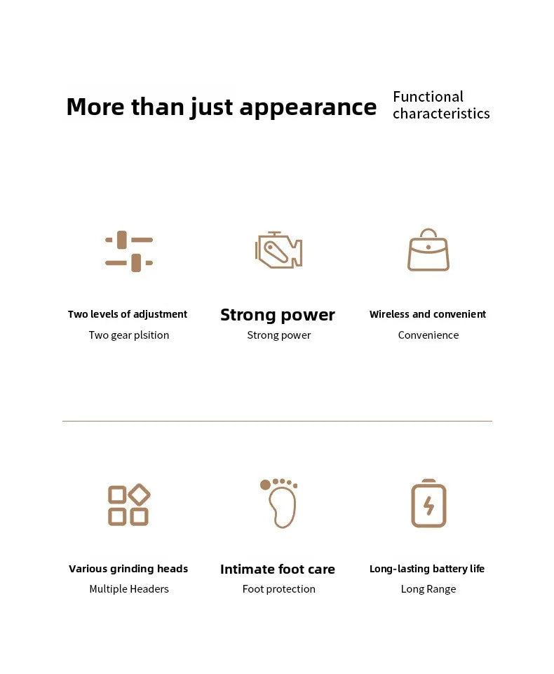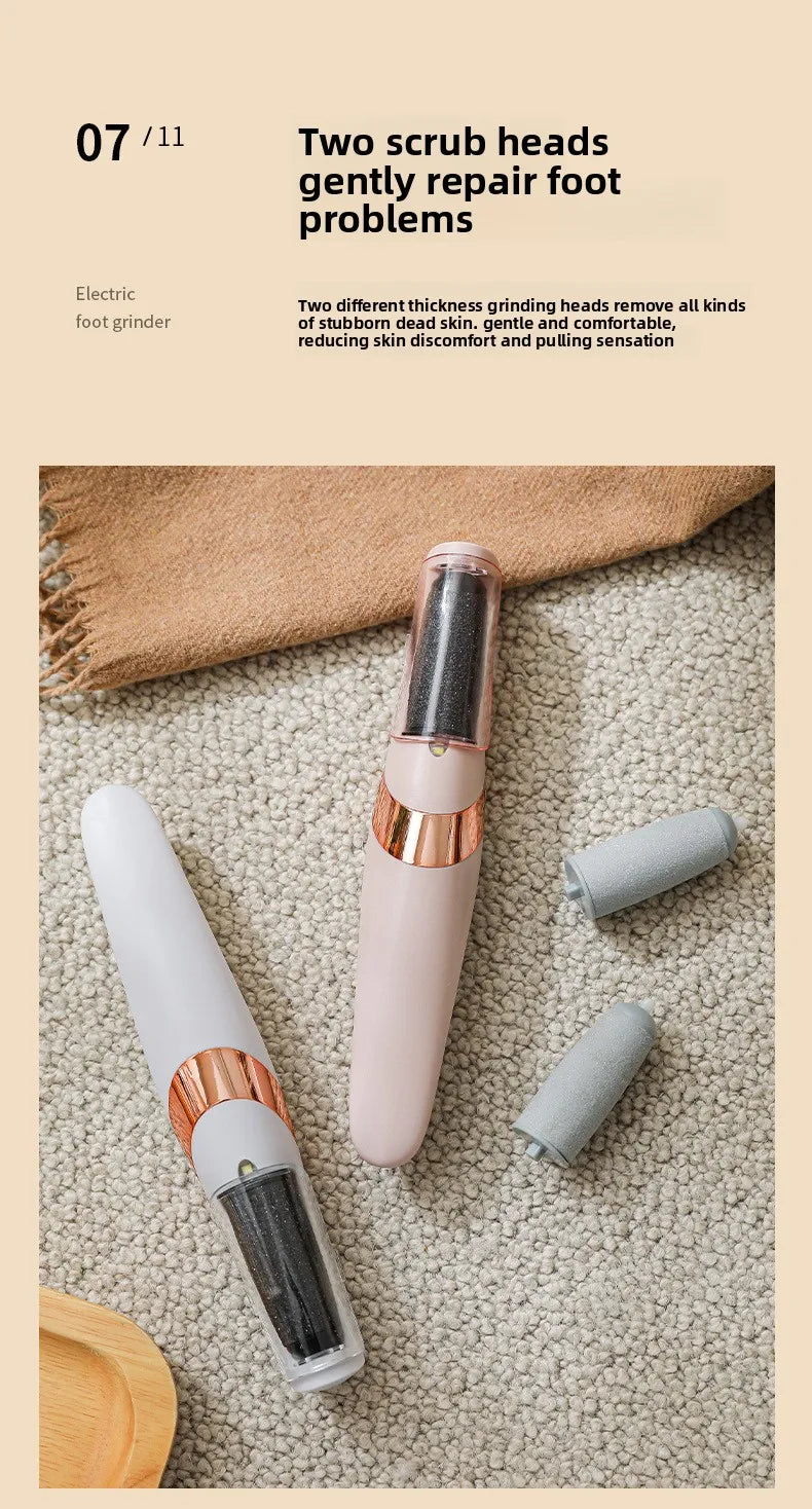 Equipped with replaceable grinding heads, it ensures effective removal of dead skin and calluses.